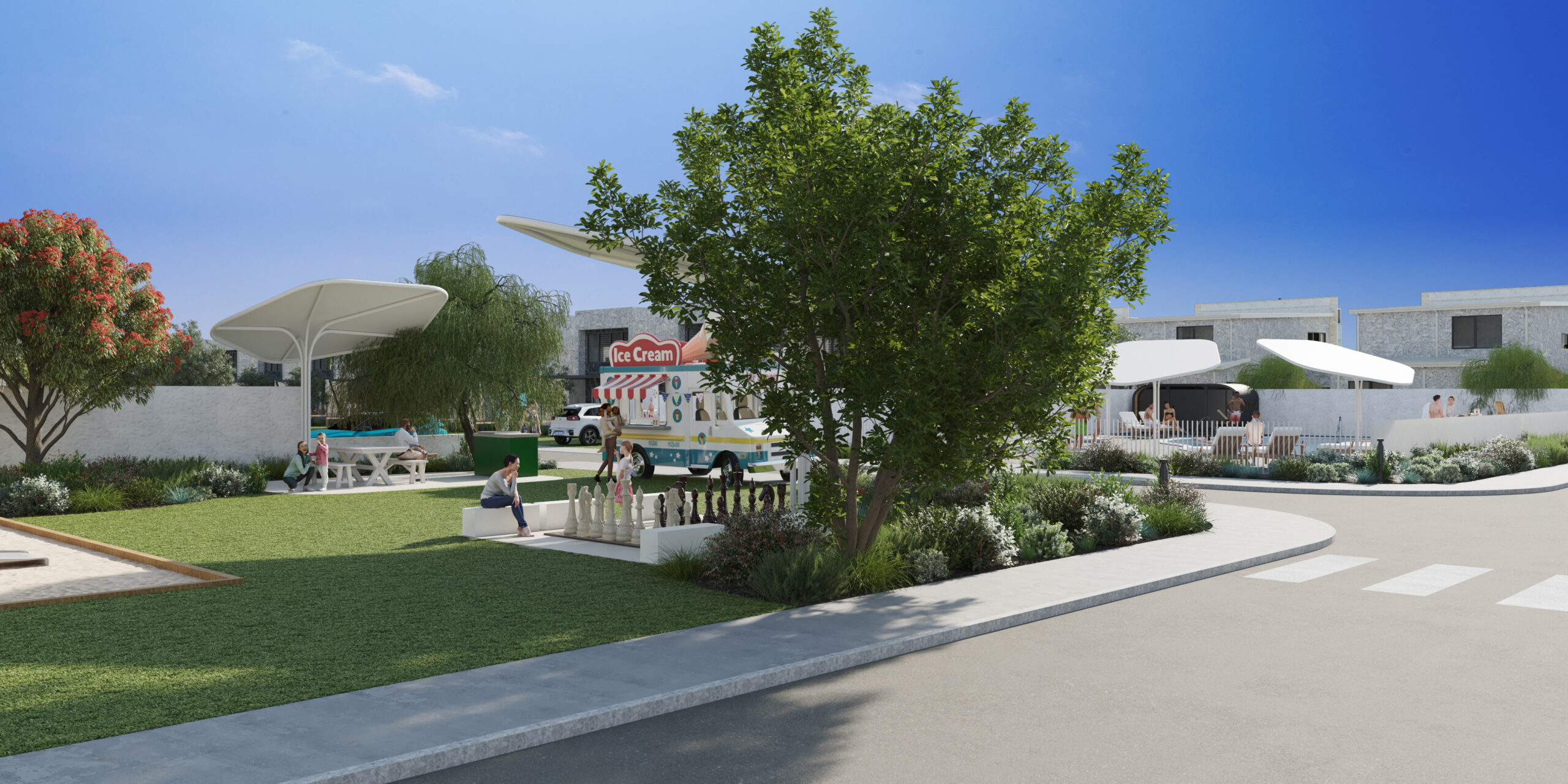 Two swimming pools, a children’s playground, an all-weather multi-sports court, multiple BBQs, herb garden and café.